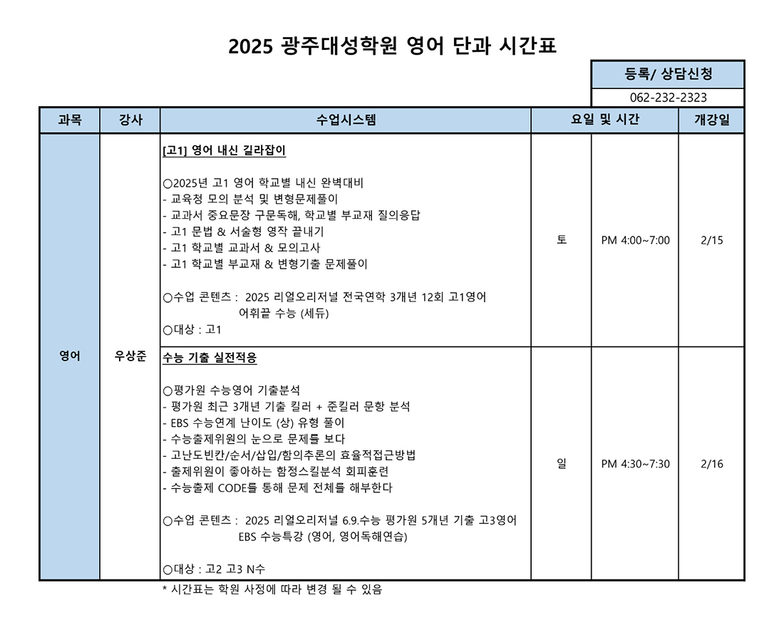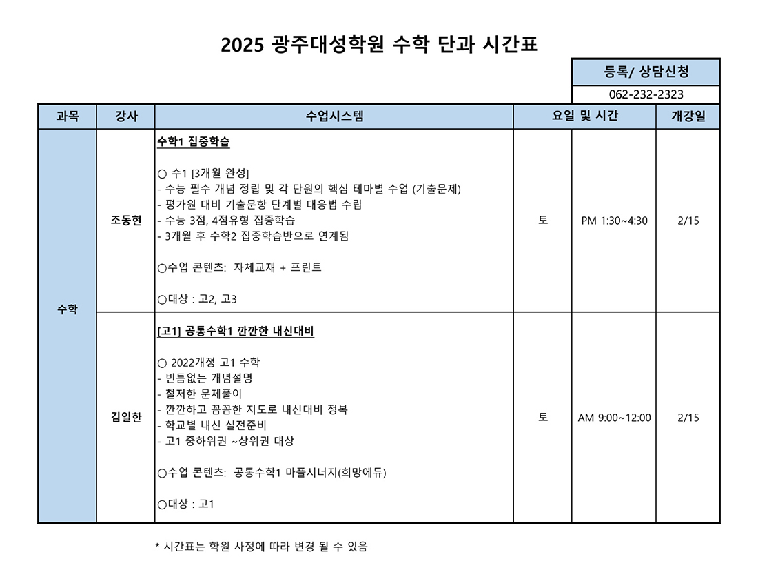 윈터 고2과정 선택집중반
