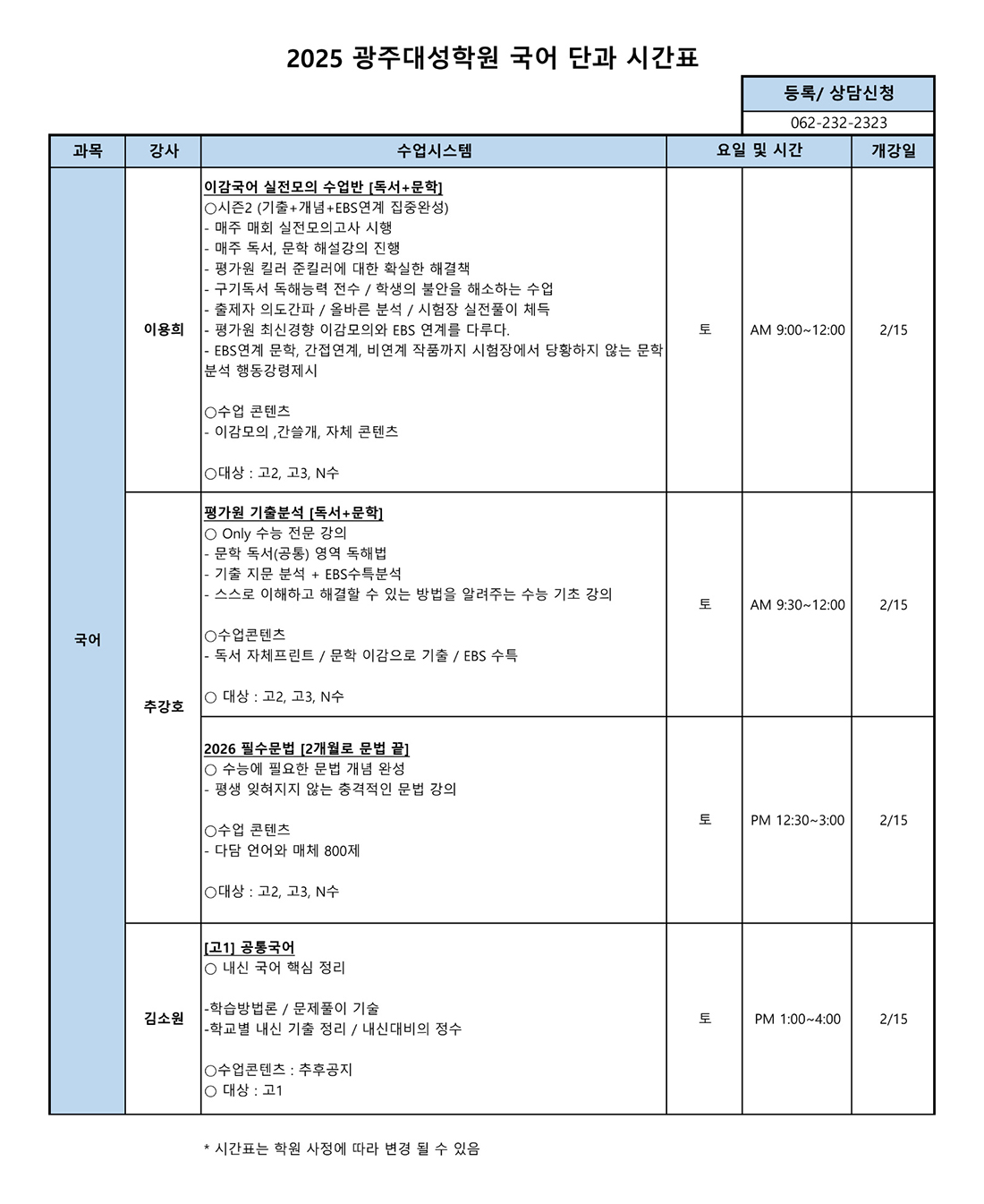 윈터 고3과정 선택집중반