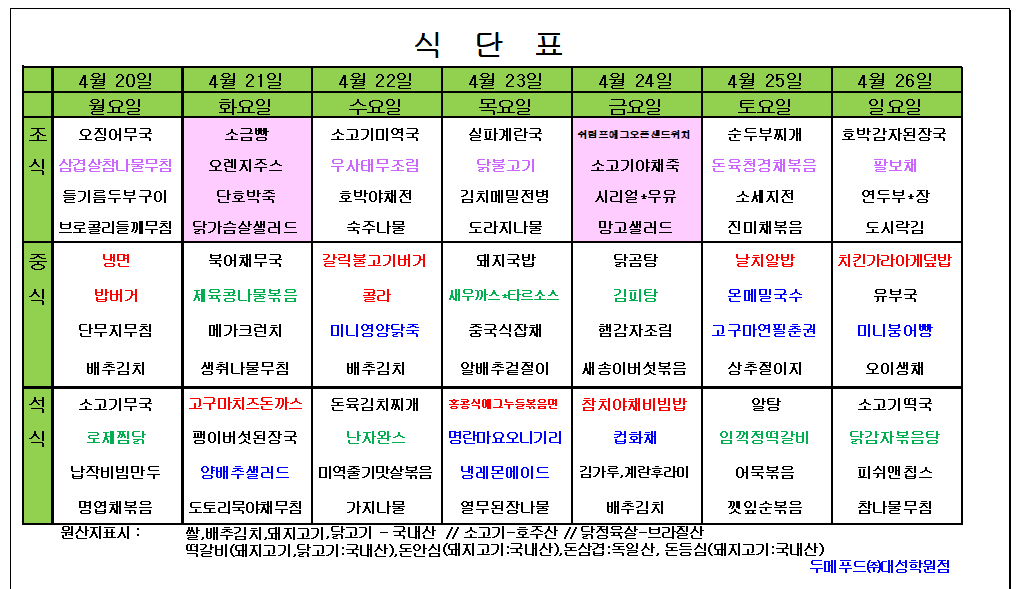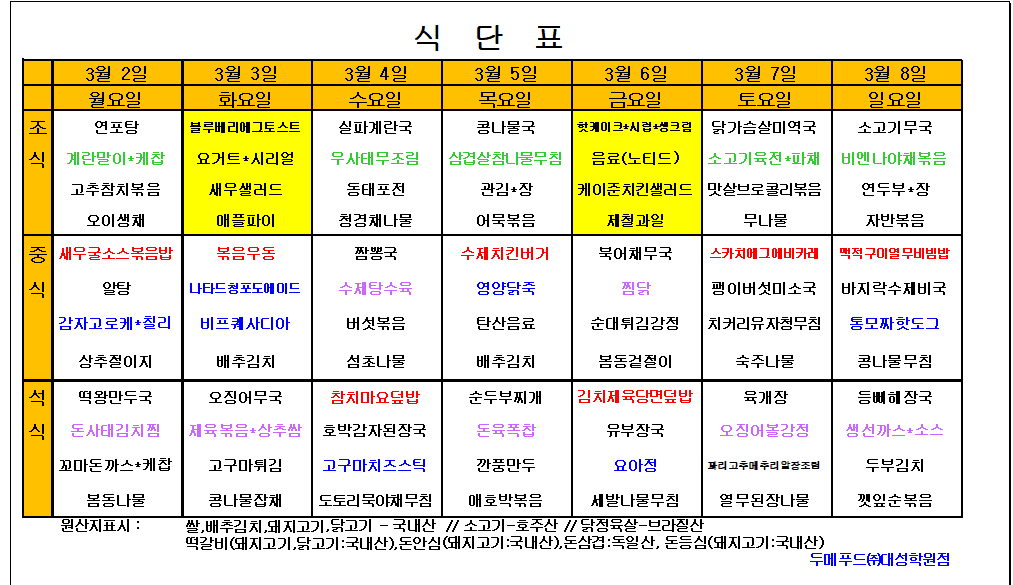 이달의 급식메뉴